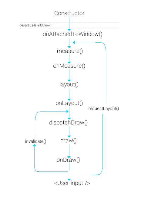 - 부모 뷰가 addView() 를 호출하면, 자식 뷰가 부모 뷰에 추가되고, 이후 뷰의 생명주기 과정이 진행된다.