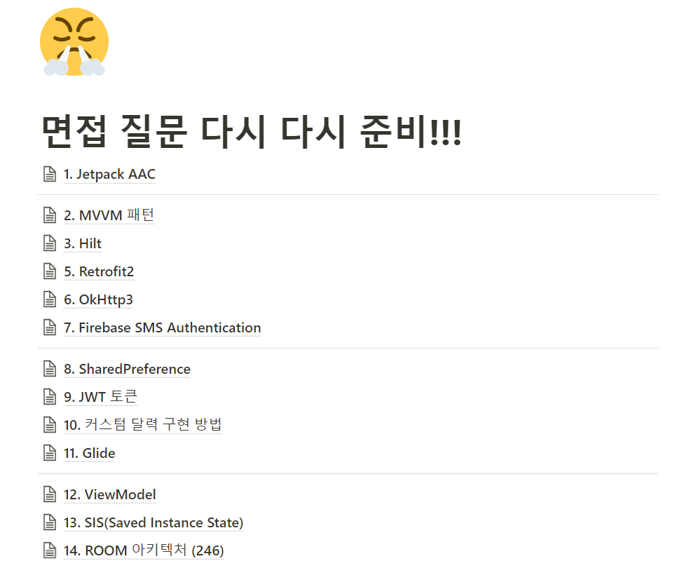 면접을 (1) 공통 질문 (2) 안드로이드 파트 질문으로 준비했습니다.