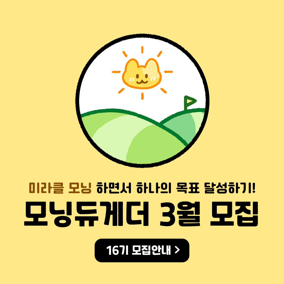 | [2025년 5월] 미라클모닝 스터디 모닝듀게더 18기 모집 (3) | 2025.05.06 |