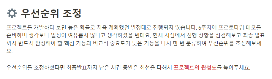 그런데 7주차의 미션 주제는 우선순위 조정으로서 우리 조에게 딱 맞는 미션이 나왔다.