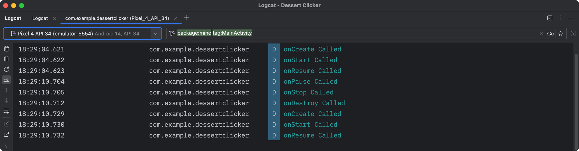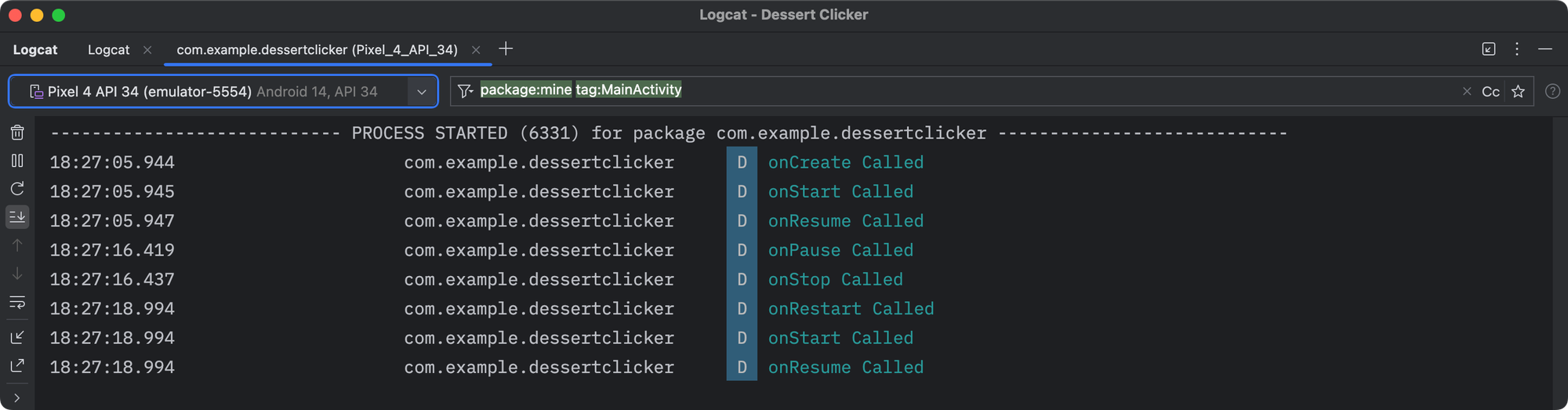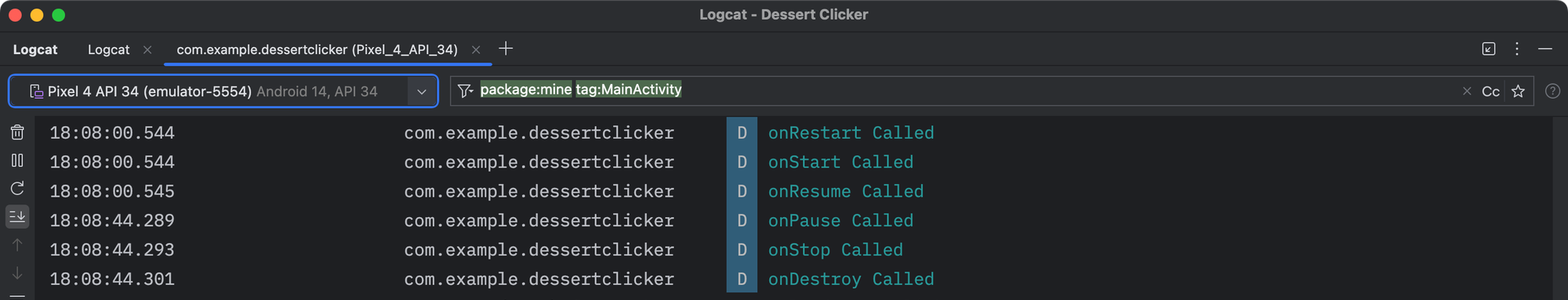 - 활동이 전화나 다른 앱으로 가려질 때에는 onStop() 이, 재개될 때에는 onResume() 이 실행된다.