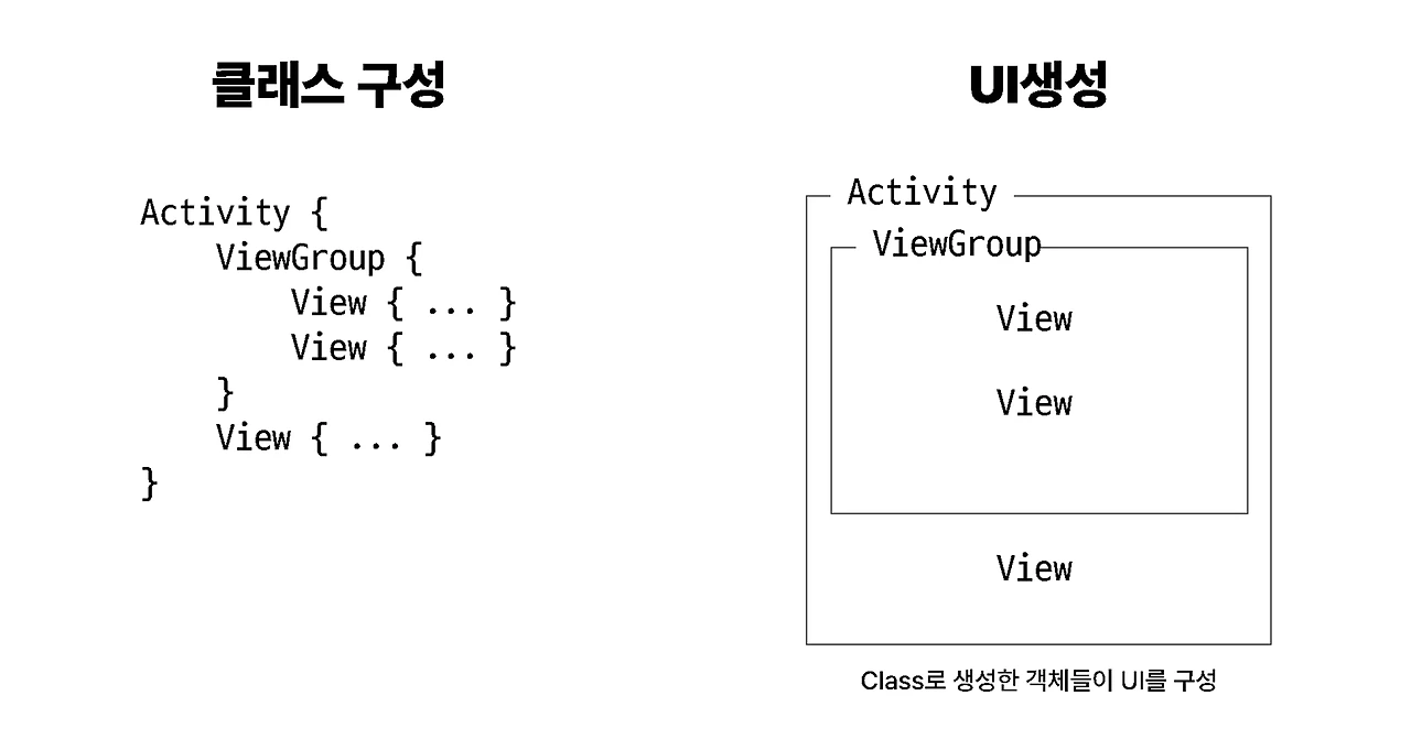 - 액티비티는 하나 이상의 뷰(View)나 뷰 그룹(View Group)을 가지고 있어야 하며, 이를 통해 UI를 표현한다.